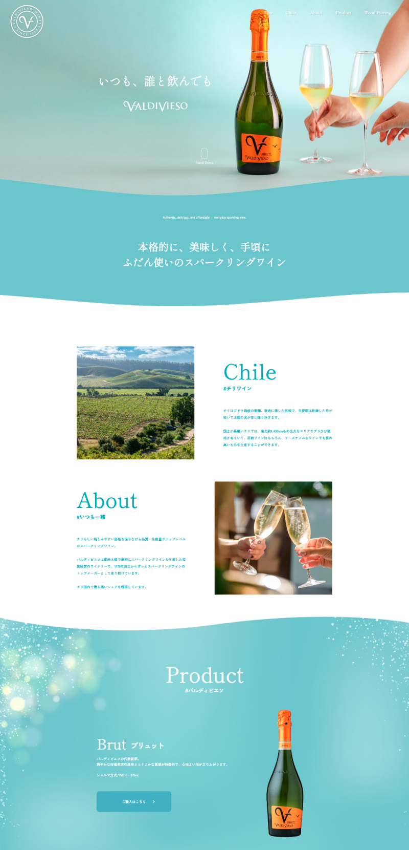 商品のブランドイメージをしっかりと表現することを意識して作成しました。スパークリングの爽やかさ、ワインの華やかさをアニメーションや色味で表現しています。